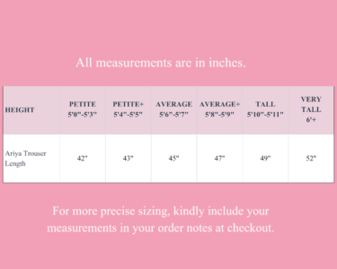 Petite, Petite Plus, Average, Average Plus, Tall, Very Tall