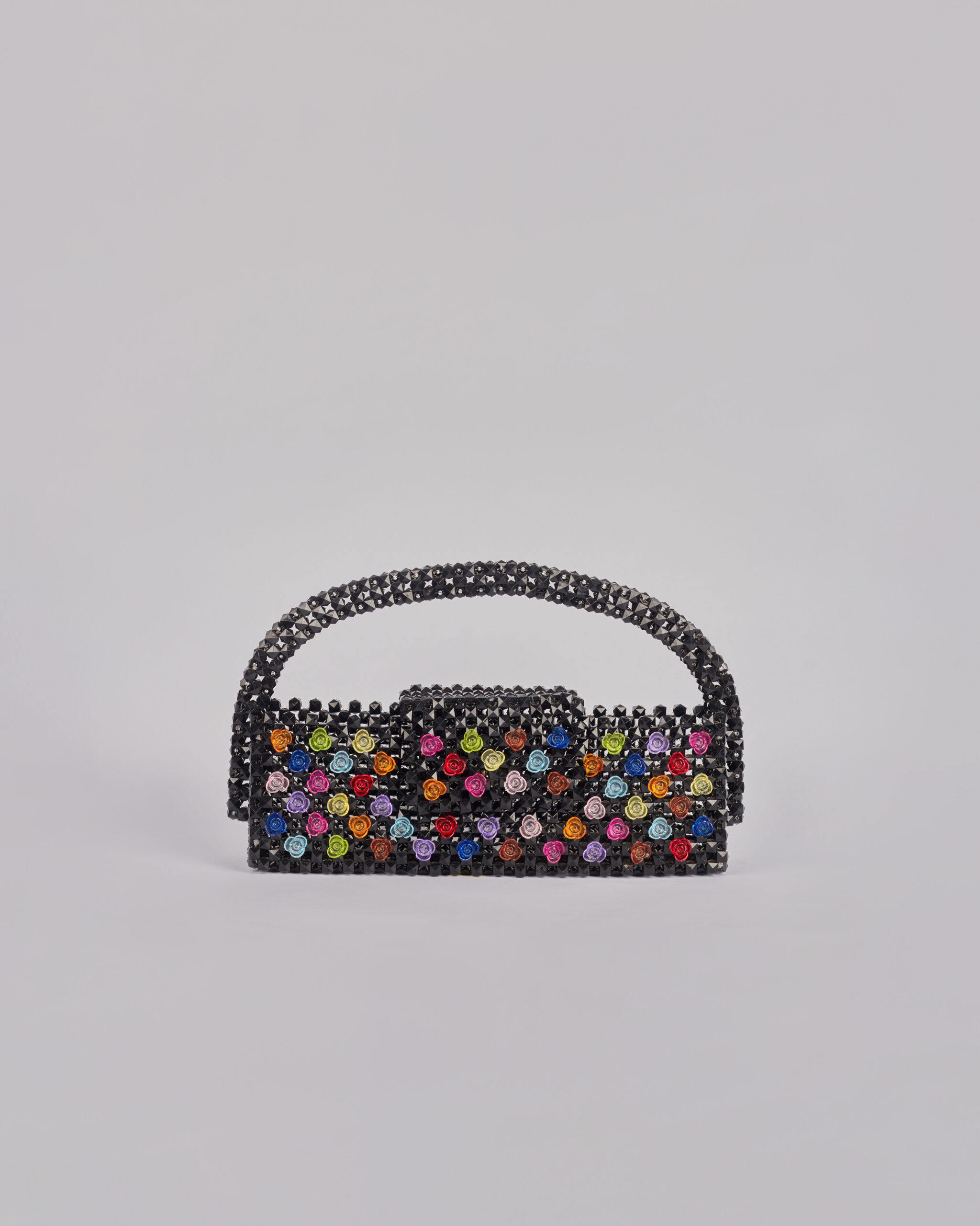 La rosette bag – A structured beaded handbag that marries elegance with romance. Its compact silhouette is adorned with delicate rose-shaped bead details, giving the piece a timeless, feminine charm. Finished with a sturdy top handle, it’s a statement bag that carries both artistry and grace.
