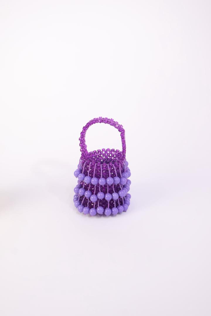 A handcrafted bucket bag that celebrates intricate bead artistry. Its structured silhouette is built with tiered layers of rounded beads, creating a bold yet elegant texture. Designed with a sturdy beaded handle and finished with a silk pouch inside, this piece combines craftsmanship with functionality — a true statement accessory for any occasion.